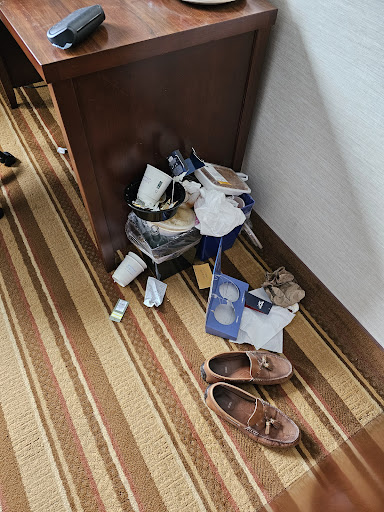 Third, the room. The room was clean and comfortable and on any other trip would have been great. However, when I arrived I asked if they had an accessible room. I clarified I am not disabled in any way, I don't mean accessible in that way. But I was wrangling two dogs and a very bulky, precariously loaded luggage cart and would like to have it be as smooth sailing as possible. The night agent (not Ann) switched me to a room near-ish the front door but impossible for me to maneuver the luggage cart into due to the narrow entry way. She was willing to move me to a different room, but it would have been on the third floor and nowhere near the entry. She was super pleasant and willing to move me to whatever room I chose given the available options. She might have rekeyed my card four times as we talked through different options. This was not an issue with her AT ALL. It is the layout of the hotel. In fact, she ended up helping me with the luggage rack since it was impossible to manage on my own. So no complaints about her. Just the room layout was very awkward, and trying to come through the front door was difficult as well (with a luggage rack, by myself -- on a "normal" trip it would have been fine).