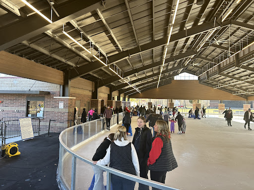 Stopped to view all the lovely holiday lights on display with my grandaughter Guin and her dad Stephen. We were surprised to find an ice skating rink set up in the Farmers Market pavilion! Sterling Heights residents skate for free with proof of address and non-residents pay $5.00. Use your own skates or rent a pair for $3.00. For safetys sake a helmet is recommended...