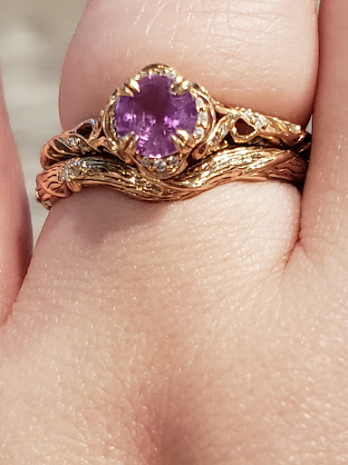 I stopped in to the store to inquire about the possibility of combining two pieces of jewelry in some way. My husband and I had commissioned two pieces of jewelry representing the yin/yang of our lives….he passed away earlier this year and I wanted to have the two combined in some way. We had both pendants and wedding rings done in that same style. I was explained that in order to put our rings put together, the process may alter in some way the appearance of the rings….time was taken to explain the process for which I am very grateful. It was decided that I could have both pieces put on one chain, and when they hung on the chain they formed the perfect circle of yin/yang design. I picked the chain up today and it is perfect! I thank the staff for their time spent and expertise shared with me! Thank you! I...