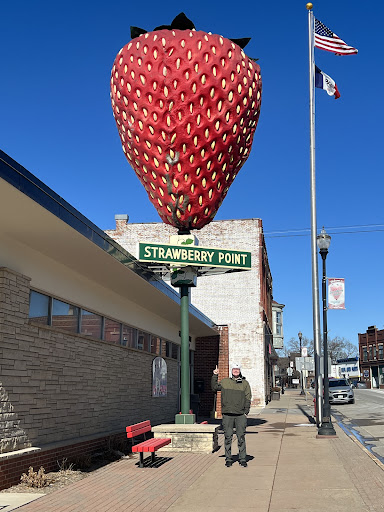One of the cutest roadside attractions! There's a store next door that sells fun strawberry merchandise and the quilt store next to that gave my daughter 3 free strawberry postcards AND stamped them for her! The people in this town are incredibly friendly. Go to the historic hotel just up the street for yummy breakfast- their lunch and dinner menu...