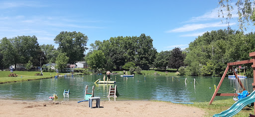 Local lake where you can gain entrance by buying a yearly membership. They have pavilions for seating and parties (you need to rent the space out for large parties).volley ball net, Playground and shallow water area where kids can play, deeper portion that has a diving board and floating dock. There is also a fishing area, fishing is catch...