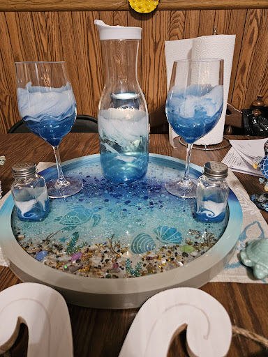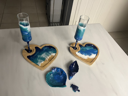 We started with the Resin Beach Wave Cutting Board class, which was absolutely AMAZING. We learned so much and had a blast creating our boards. Then we tried the paint pouring classâOMG, even more fun! Bridget is such a kind, talented, and patient instructor. Itâs clear that she truly loves what she does, not just creating her own beautiful pieces but also sharing her passion and skills with others.