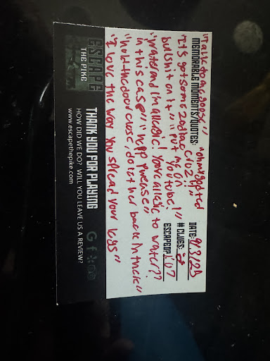 I cannot recommend Escape the Pike highly enough! My only regret is that we live ~5 hours away and won't be able to experience the other rooms until I find myself in the...