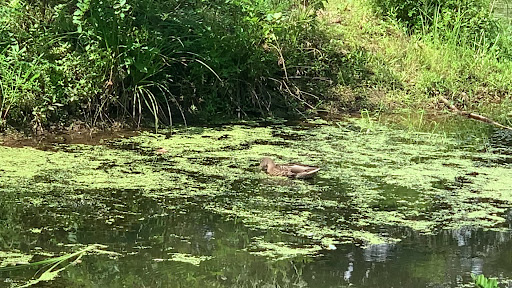 Perhaps because of the current drought, the canal's water was very low and greenish. When the breeze came from the west, pretty smelly, too. Plenty of birds in the trees & bushes & farmer's field.