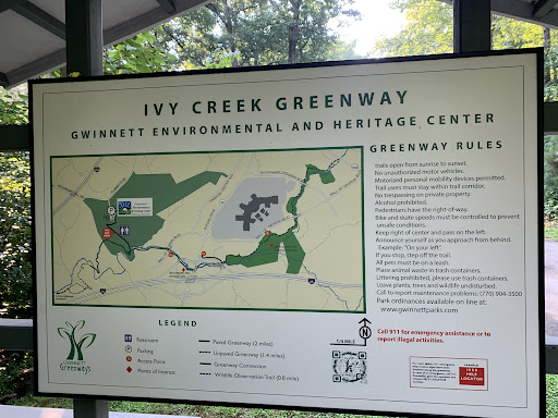 Read moreLoved it. I made my way to mill creek nature center by walking from the Gwinnett Environment & Heritage center (round trip 4 miles). If you plan to go this way, walk down the stairs that run along side the heritage center, turn left at the old house and barn, cross the road to get onto the ivy creek greenway, after you pass the bathrooms and dog walk area make a left and cross over the board walks. Along the way you will pass an “waterfall”, under the highways, eventually the trail will run into gravel straight or paved to the left. Proceed straight and the nature center is about a 1/4 of a mile into the woods. Exploring the board walks was fun and reminded me of running through the board walks as a kid in FL. I’ll be...