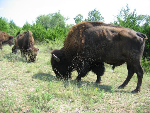 If you want to see a Bison this is a safe place to accomplish that feat. They do however roam wherever they want and are not always here to view. The trail that goes by the fence is one big 3 mile loop called the buffalo trail. It is great for walking but if you would rather walk on a sidewalk they have one around veterans lake that is really nice. Also the tail leaves the bison enclosure so if your here to see them don't leave this area. On the up side they...