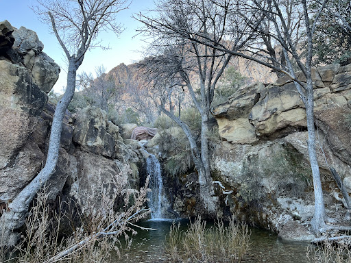 Read moreFree trailhead in the Red Rock National Conservation Area. Trail starts on a sandy / gravely plateau, but gets more rocky and difficult as you get in to the canyon. It took me 3 hours for a round trip. Once you get in to the Rainbow Mountains Wilderness, the trails become hard to follow. An offline copy of the area in Google Maps was helpful. But a dedicated GPS trail app / device will be helpful. Light is best early in the mornings. Bring more water than you think you'll need. There are thousands of Joshua trees when you start out. That changes to deciduous trees as you get higher in elevation and deeper in the canyon. I didn't see any wild horses or burros, but there were tons of fresh poop on the trail. I found the lower "waterfall". The creekbed was dry, but there was water in the pool below the waterfall. Never found the...