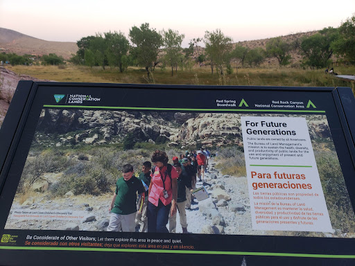 Read moreI try to visit Red Springs often. Most people when they want to rock climb, free climbing, many hiking trails. If you want to see some desert wildlife, this is a great place to have a picnic or BBQ. Red Springs is a top destination for rock climbing. There is a handicap accessible boardwalk that go by some Indian petrogliphs. The picnic area is very large, there are also smaller cabanas with BBQ pits. Red Spring is a fantastic place to take your family, kids love it and it is pet friendly. Come and enjoy this...