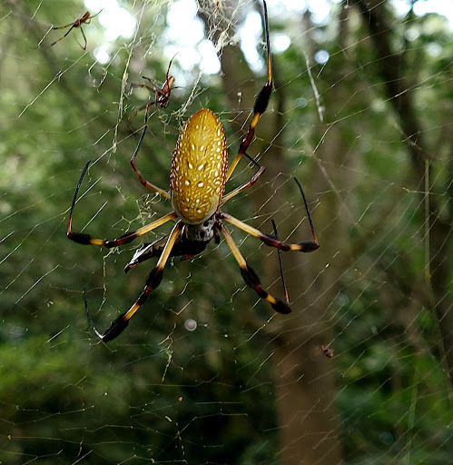Anyway, there were a lot of turtles about, but we couldn't escape the feeling of a vaguely solemn or funereal energy looming about the old oaks and crepe myrtles. Along the fence line we spotted a gorgeous Golden Silk Orb Weaver.
