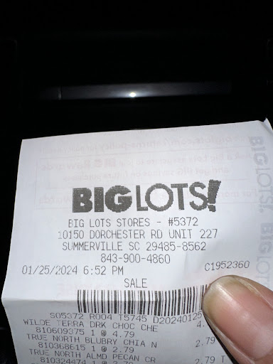 Read moreMade three trips today. Bought a sofa first then went back and bought groceries and essential things that I needed for my new place. And then went back and got a vacuum cleaner and other things needed for the house! First two trips for great last trip easy shopping experience but the cashier lady was not very friendly she didn't smile she was directing to the point kind of made you feel like she didn't want to be there! Not calling any names cuz I don't want someone to lose their job. Didn't really bother me that much but felt it was worth saying! Otherwise all the other associates in the store are very friendly and kind! So today I went back to the Summerville Big Lots store. Saved $45 in coupons and cash and coupons. Very good experience in the Summerville store today. Usually don't go there because the manager hasn't been a real jerk and most people don't like him. But he wasn't there today and everybody...