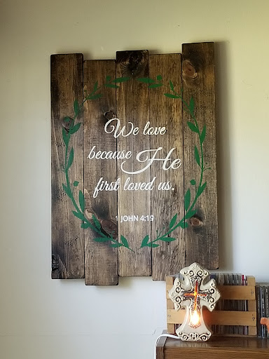 First you start by sanding your boards to give it a rustic, weathered look. Next, they give you a few minutes and some tools (hammer/meat cleaver) so you can make the board look as weather as you want. They do provide earplugs for this which was awesome as it gets loud! After that, you choose the stain you want and apply the stain. After the stain dries, you may either apply a paint to the board with a couple different techniques, or leave it stained. Then they show you how to apply the stencils for your design. Again, you choose the colors you want the designs to be. Numerous colors of glitter were also provided for us to add on top of the paint which was amazing! You rip the stencils off, they spray a finishing layer if you used glitter, and you're done! They take pictures of you and your group with your finished pieces and you are sent on your way after 3 hours of hard work. Beverages were not included but they have them for sale for reasonable prices (we got 2 glasses of wine, 1 corona, and a coke for $20). They had a list of different beers and wines to choose from, as well as soda and bottled water. You pay for those at the end after you get your picture taken. Cards and cash accepted...