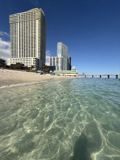 Read moreCONS: Beach had rotten eggs smell. Sand has larger bits and is flattened out so feels and looks different to more southern beaches. Too much small trash. PROS: Not crowded after 6pm. Great eateries nearby. Many guys fishing off the end of the pier. Million dollar luxury condo backdrop. Less tourists. Clear aqua water. Many Europeans with their families....