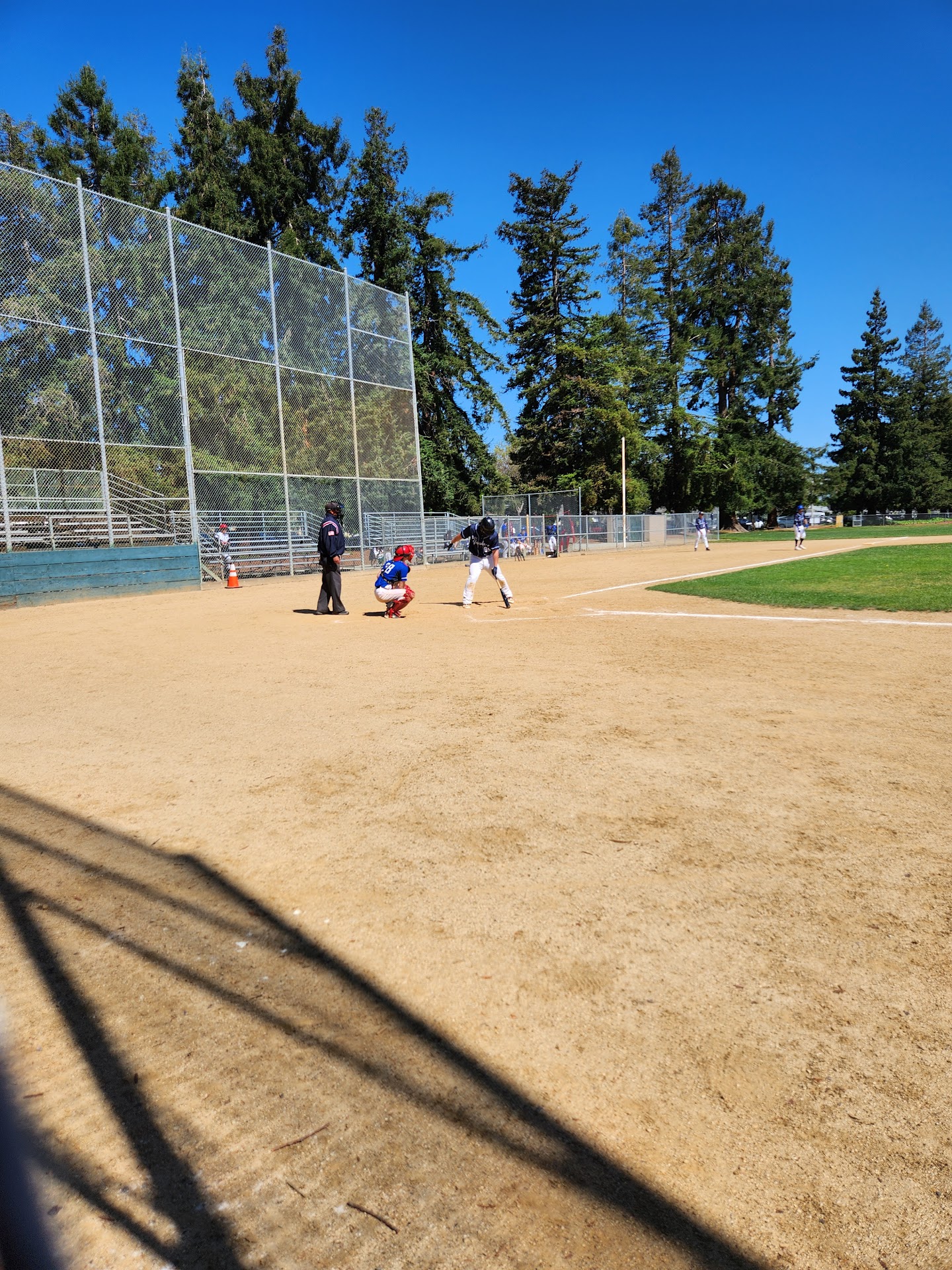 Son's baseball team played here today. I was only able to visit the big ball field (on the corner), restrooms & parking. The park is beautifully set with all those tall Redwoods? that surround the bb field.