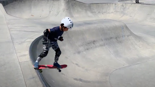It is a proud mama moment, watching her come out of her shell and laugh with him, fist bump, and then she’s dropping into the bowl pushing herself to nail that next trick down.
