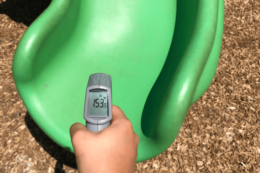 There's one swing that'll melt down faster than Tiger Woods at the 2015 U.S. Open - and you'll find it here at Fort Rock Park in Sunriver, Oregon. In a child’s imagination, a local parks play structure can become anything their creative little minds can think of. A pirate ship, a castle maybe. I brought my three year old grandson here on a warm 82°day at the beginning of June. It wasn't pirate ships & castles I thought about when my grandbabe and I made our way to the top of the play structure in an attempt to have a slide race. It was late morning, but with little to no shade covering the play structures, swings etc. The park felt like the Sahara desert and the slide was like the surface of Venus, unsuitable for any form of play. The slides were scorching hot. I was curious as to just how hot they actually were. I asked my husband to come by and bring an infrared temperature reader. We were absolutely shocked at the results (see photo) The American Burn Association says a piece of playground equipment at 140° F can take as little as three seconds to get a second-degree burn and five seconds to get a third-degree burn. The slides at Fort Rock Park were a whopping 153° F That is unacceptable! For an area that is known for tourism, outdoor recreation and a popular vacation destination, saying this park is a disappointment would be an understatement. Shame on the SROA Sunriver Owners...