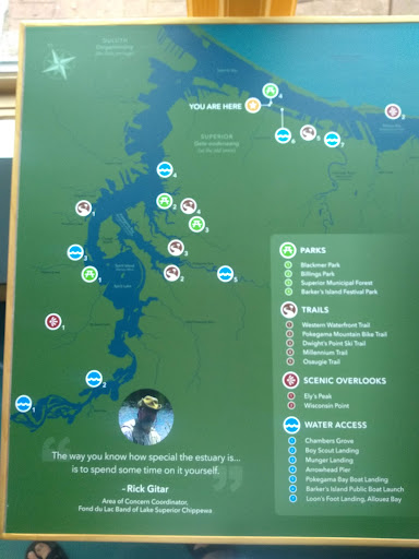 The Estuarium is very well done--well thought-out and designed. A lot of quality information and visuals packed into a relatively small space. Loved the massive map of the estuary and watershed on the floor. Hard to believe I've lived in the Superior area most of my 57 years not having known about the ecological importance of the confluence of St. Louis River waters (and other rivers and streams) into the bays of the Duluth/Superior harbor and eventually to the big lake! Some nice history going on here too. The interns were also friendly and...
