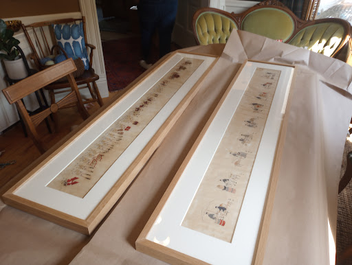 My wife found these paintings at a thrift store and they were in a sorry state. They were framed in these nasty cheap frames, They were mounted, I use the word mounted loosely, on corrugated cardboard. They did not have glass but cellophane covering them. The cellophane was so old that if one touched it, the cellophane would crumble away. These paintings are about 120-150 years old and they deserve better then that. When we brought them in, Scott, one of the owners saw the same possibility that these paintings deserved better. He was enthused about them as much as we were when my wife found them. Hudson Gallery delivered two beautifully mounted and framed paintings.. My wife and I could not be happier the way these two paintings came out Thank you Hudson gallery. ...