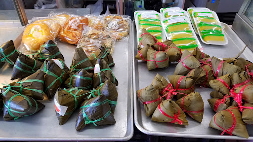 I did get a few hot to go items and they were all good. And I noticed the duck was (gasp!!!) eight dollars for a half. Maybe next time :) It looked fresh but there were only two, although it's probably because I went on a Thursday. I got a full bag for just under twenty dollars, and that includes a banh mi, a deconstructed sticky rice dumpling (all on a tray instead of in a lotus leaf), a green onion bun with pork floss and a weird hand clapping monkey candy, along with the usual suspects of tofu/tofu pudding and random sauces and snacks.