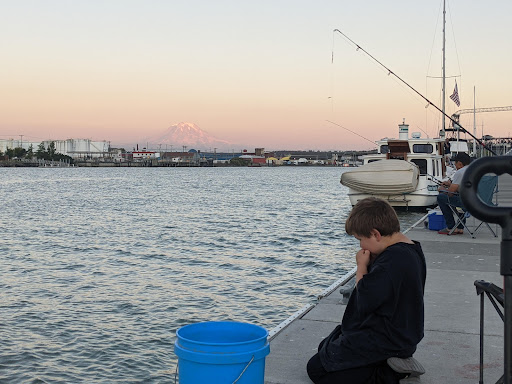 This place is great during crabbing season and before salmon season kicks off at the Puyallup River. This has been one of the go-to places to take my son for casual saltwater fishing. There is sometimes an issue with homeless people in the area harassing the local fisherman and there's been a few times I've had to politely ask them to please leave myself and my son alone. Typical fish caught here are dogfish and the occasional odd salmon. I don't see much else being caught here to be honest. As an avid fisherman who goes fishing a few times a week on average, this location isn't exactly the most abundant in fish variety. But the park itself is beautiful, and watching the boats go by especially during sunset is also rather nice. The view of Mount Rainier is always spectacular. One significant downside of mention though, there is no public bathroom that I know of at this park. So you're going to have to either hold it or find somewhere else to use the bathroom if you're planning to spend a long period of time here. Do you make sure to lock your car, I've seen a lot of shifty behavior...