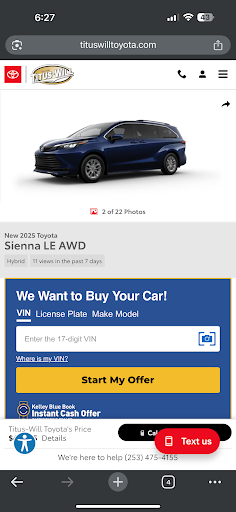 Read moreMy wife and I were in the market for a van to accommodate our growing family and came across a vehicle we liked at Titus Will in Tacoma. The mileage was reasonable, so we scheduled a test drive with the salesperson, Michael Robinson II. Unfortunately, from the start, he came off as unwelcoming. When we asked specific questions about the vehicle, it became clear he lacked knowledge about it and didn’t appear to make any effort to be informed. He mentioned he had only been with the company for 10 months, which might explain the lack of familiarity, but it was still disappointing. During our inspection, I noticed signs of body repair even though the vehicle had a clean title with no reported accidents. My wife test drove the vehicle, and we moved on to negotiating, but left after failing to agree on a fair price. The following week, we noticed the listing was still active and had dropped a few hundred dollars. We returned to Titus Will and went through the application process to review rates and terms. After seeing the final numbers, we told Michael we needed more time to discuss. He became visibly frustrated, and his tone changed noticeably. We asked about including a second key, but he insisted the car came with only one. Later, a finance manager stepped in and agreed to provide a second key, but there was still no movement on the price, so we declined again. Another week passed and I received a text from Michael stating he could now offer the vehicle at the price we had discussed earlier. I checked the listing again and noticed the price had dropped further. We returned and sat down to finalize the paperwork. However, the contract reflected a price that was $1,000 higher than what Michael had texted me. When I brought this up, he dismissed it rudely, claiming they were already losing money on the deal. We walked away again. Two weeks later, Michael texted again confirming they were ready to accept our previously discussed offer. I made sure to confirm the details this time to avoid further wasted trips. While the deal no longer included a spare key, they did offer a full tank of gas. We agreed and headed back, hoping to finally complete the purchase. Upon arrival, the dealership was quiet, and I went straight to the vehicle to inspect it. Michael approached with a rude tone and asked, “Are we gonna do the paperwork?” I replied that I wanted to test-drive the vehicle again since it had been weeks. He flatly refused, saying, “No!” I explained that I hadn’t seen or driven the car in a while, but he still denied the request. At that point, I told him we wouldn’t be proceeding. We couldn’t understand why a test drive would be refused right before purchasing such an expensive vehicle. Overall, my wife and I were extremely disappointed with the experience at Titus Will. We felt disrespected, profiled, and that our time was not valued. We will definitely be taking our...
