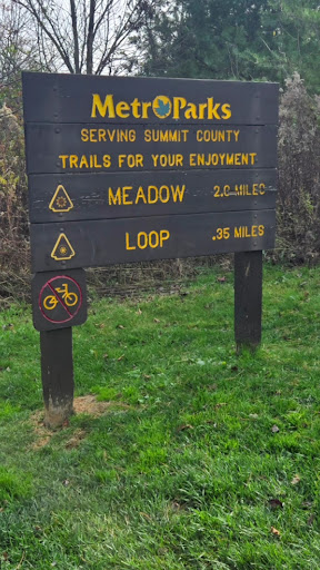 Read moreThis Tallmadge Meadows Park is an awesome place to enjoy the outdoors in a nice brisk walk. One of our very favorite places to come to. There are plenty of places to set up a picnic lunch or dinner and plenty of Trail. I clocked the full loop at 2.29 actual miles unlike the "2 miles" that is posted (just return up the path by the restroom like you start). If you want bright sunshine, a little woods, and an open meadow walk in grass take this. Public restrooms and nice big...