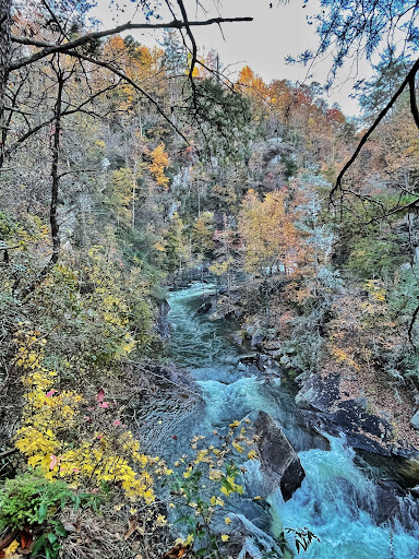 If you follow my pics, this trail starts at the campground: Tallulah Gorge State Park Campground. You can start from the Interpretive Center on 338 Jane Hurt Yarn Dr, Tallulah Falls, GA 30573. There is a parking fee.