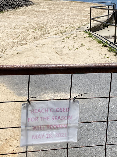 Beautiful locale, restroom facilities are clean, beach is small but nice, there is a specialty railed ramp built all the way down in the water for wheelchair beach access, and parking is great. Drawbacks: difficult access on foot- rough downhill dirt and roots are especially tough in flip-flops or barefoot, even in boots it would be scary for an older person or carrying items; picnic tables are inconveniently placed for use by beach-goers and there are no places to put your things out of the dirt except a retaining wall by the water; the entrance by the beautiful stone restroom building is not easily visible. Hard to get to, nice...