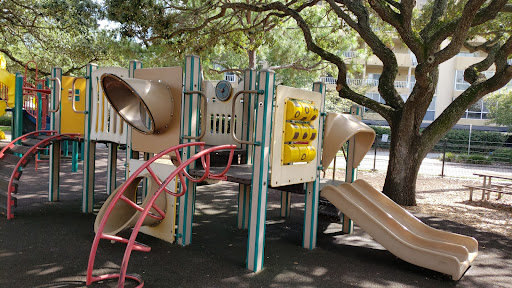 Park is not busy in the morning, the basketball court is nice and the south hoop/net has been replaced with a new net. The baseball field is nice and well kept, there seems to be some batting or pitching cages next to the basketball court. There are lights for both the court and the baseball field so I can imagine that there are games going on at night. The playground is nice and well kept for the kids to do their thing. It is pretty sad that the Coast Guard takes up all the parking spaces so you’ll have to park in the street. Restrooms are clean, and they do have one handicap parking spot and one golf cart...