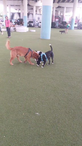 Read moreGreat dog park downtown. It's underneath the overpass which makes it shaded from the sun. This park even has a slight breeze from traffic overhead. The dog park has two sides, one for large dogs and one for small dogs. The grass is that fake turf made for dogs, a bit thicker as not to hurt the paws of the dogs. Both sides have places to sit and concrete with wooden tops for the adventurous dogs to jump on. There are also dog poo bag dispensers and water fountains. I dinged a star because of all the dog poo that the owners left on the turf. C'mon, if you bring your dog, pay attention and get off your phone long enough to clean up after your dog. Just common courtesy here, not to pretend not to see your dog taking a No. 2 then leave. I can go on about this about other parks too, it just makes it a nicer place to visit for everyone. Anyhow, nice little area to take your dogs and to stay out of the heat. Parking is on the left and right sides of...