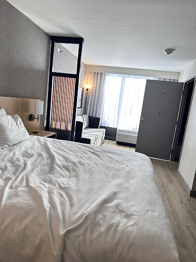 Read moreBy far the worst hotel Iâve stayed at in more than 10 years. Letâs start from the beginning, upon our arrival at check in, the girl working the front desk almost charged me $800 (that was company was paying for and had payment info on file) because she didnât know what she was doing. This was after waiting about three minutes with her clicking around in the system only to then have to call on a manager for assistance because she didnât see that the room was already paid for by my company. When the manager came over to assist, I was explaining how payment was setup and he cut me off with a hand gesture and provided instructions to his employee. Strike one. We got to our room which was supposed to be a king bed room only to see that we were put into a room with doubles. I called the front desk and got the same manager on the phone. He said, Iâll call you back in just a minute. He then had another guy call me to say that they overbooked and if they moved me to another room, it would create other issues so we were stuck with what we got. There were food particles on the floor under the bed from lack of proper cleaning. The tub drain was clogged so when you took a shower, your feet took a bath. During the night the pipes made a clicking noise that would wake me up in the middle of the night. The all natural breakfast contained rotten strawberries mixed in with perfectly good blueberries. The coffee station had no flavor erred creamer but you had the option of coffee house style syrups and plain creamers however; after breakfast, if you wanted coffee, you had to buy one from their barista station. There are a group of homeless people that live and setup on the right side of the hotel and a strop club right across the street within walking distance called Penthouse and slightly further down the road another called, Dollhouse. If you arrived back late to the hotel and needed to park, there was limited parking so we had to park next door at the Hampton (unless we wanted to park next to the homeless group). My company will receive this same review in hopes they never book here again for...