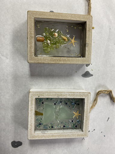 We spent the afternoon creating seaglass art... It was SO MUCH FUN... There are so many types of classes they offer, but the sea glass was our choice for the day. Cheri, the owner, and her assistant, Corey... Well they were just the loveliest women. Always there to help but not pushing their way into our projects... They offered advice... But only when needed. They are knowledgeable and experienced in their crafts... And they have so many options and supplies... Each time they went into the back room the emerged with more fun supplies and ideas.