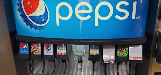 I also got a large fountain drink only to come upon an absolute trash heap at the self-serve drink counter. Ice was spilling out all over, including the floor and a number of the soda bibs were empty (not even sort of empty, but running as clear as water) Considering how rude the staff were and how long the line was I just threw my $9.00 large soda cup away rather than having to deal with them.
