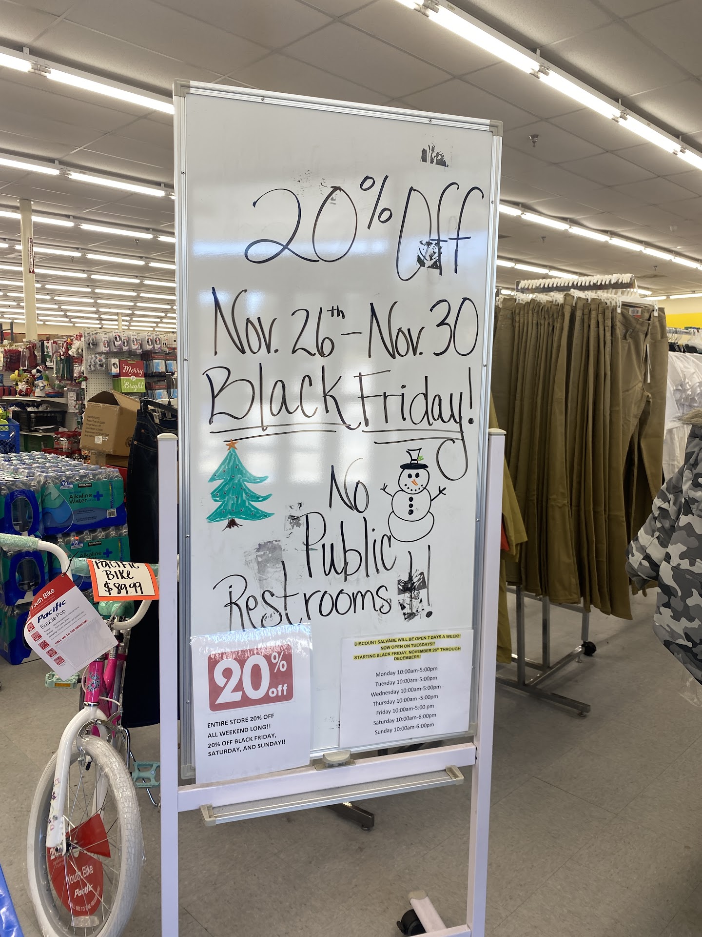 Read moreLarge clean store with with aisles. I arrived on a Monday at 5:50. Discount Salvage has a very large parking lot with several handicapped parking spaces. The building is very large and easy to spot from the road. I was amazed at what the store had, as soon as I walked in I saw Easter baskets and candy, clothing for children, toys, aisles of foods. To my disappointment the announcement was made the store was closing in 5 minutes. They close at 6 on Monday are closed on Tuesday, but are open until 7 the rest of the time. I will definitely be going back when I have time to shop. This store had so much, I can't...