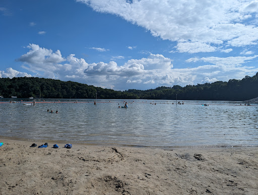 What an amazing place to take your kids or just relax. We took our kids here during the week so I can't vouch for weekends or holidays. The entire time we were here, there was maybe a total of 4 to 5 families at any given time enjoying the lake. There is tons of space under the trees so you don't need to bring an umbrella. The zoned-off swimming area is perfect for kids as it doesn't go past a little over 3 feet deep. The swimming area is also fenced in so no need to worry about anyone floating outside of that area. It's very peaceful and quiet. They offer a park with benches right next to the swimming area and also a building with a TV and restrooms. You can plan just about any activity or even here with all the space and accommodations. It's highly pet-friendly, we brought our little dog along with us. I highly recommend a visit...