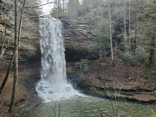 The trail to the falls is not too bad until you actually get to the falls. At the upper falls, you'll have to climb down a short way using roots for footholds. It is very steep and seemed dangerous. Then, you will have to cross a large stream by stepping on large rocks with water flowing over on places (just above the falls) in order to continue on the trail. Then it's a steep climb up, using tree roots for footing. You better be in good shape, limber, and stable if you want to do this.