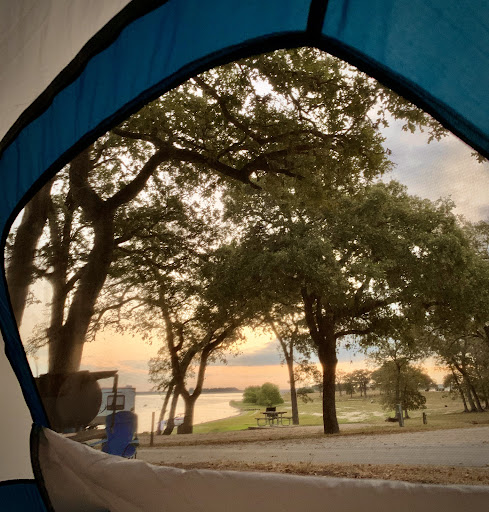 The bad: -The gate attendants are abrupt and not very welcoming... we had a big group in adjacent sites and all arrived separately and each carload said the same thing about the gate attendants- just seemed inconvenienced that we were even there. -There was a burn ban so we couldn’t use the campfire rings (even though they’re on the gravel/sand in a metal ring, water nearby, and there’s dew every morning) none of the confirmation emails or the website or anything forewarned us of that so that was a huge bummer :(. -The nature trail was overgrown in several spots, hard to walk through. -There was no field or open space that was maintained enough to play any of the yard games we brought. Either grass was too tall, or the stickers were unbearable. -Goat head stickers everywhere- big tan and purple nasty things, the dogs had a hard time walking anywhere without getting pricked. -The ground was WAY too hard to drive tent stakes, and the sites too narrow that not all of them had soft ground at all, what soft ground there was was piled with oak leaves that were hiding very angry fire ant piles. All seemed to cater to RV users. -The shoreline of the lake was pretty littered (even found some rusty rebar). -No soap in the bathrooms, and the hand dryers didn’t work. Bathroom ceilings covered in cobwebs and dead bugs. -The map has no units of measurement so it’s not super clear how to get around, and the spot assignments aren’t in order at all times (and very hard to see in the dark!). -Only one person drank the water from the spigot on-site, and that person got violently ill in the middle of the night. So while we can’t say for certain, none of us drank the water after that just to be safe.