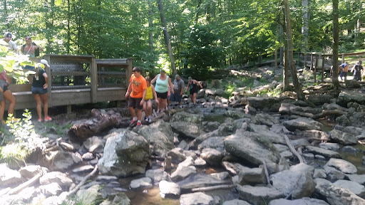 My family and I have been coming for years. There are two trails to the waterfall. The cliff trail is the harder of the two. My children tend to take that trail while us 'old folk' stick to the easy trail. Both end at the same spot so there are no real worries about not meeting up at the end. The waterfall is best viewed in march through may. From june on the waterflow gets smaller and smaller. Climbing the falls is fairly easy, even for the younger ones, but be aware of slippery rock surfaces both dry and wet. As you reach the top of the falls you can follow the stream back several hundred yards and there are a few good swimming holes for the kids to jump in. After climbing back down we head to the lake area and the kids swim while I grill and relax. Within the swimming area the water never gets to deep and the lifeguards are very attentive.