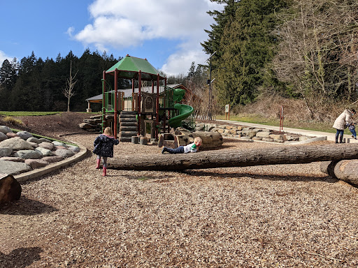 Read moreTge brand new play structure is cute. There is some small seats under the structure where kids can play and get a little shade. There is a covered area with at least one table, unfortunately it faces toward the field and not toward the playground so it's not a convenient place for shade or a potluck if you plan to have your kids play on the play structure at the same time. Also, there is no proper shaded area for parents or little ones near the playground so you have to stay out in the blazing sun if you want to be near your children while they play. The park has some cute wood carvings that may or may not stand up to weather (and hopefully not become vandalized). Parking is awful! You either park on the side of the road near Fowler Middle School on Tiedeman or the side of the road off of Tigard Street. Then you have to walk down a path (part of the Fanno Creek Trail) to get to the actual playground. I'd suggest a stroller or wagon if you have the type of kids that are too tired to walk after a trip to the park. Overall, I'm not sure how likely I am to return to this park. I prefer places I can easily and safely get in and out of quickly with my three kids. There are parks better suited...