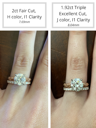 I've now received my ring with the new diamond and I am thrilled. The light performance is incredible, and even though it is "lower" color, you'd never know. It is a triple excellent that only has 2 small inclusions in very specific lighting, which I am thrilled about.