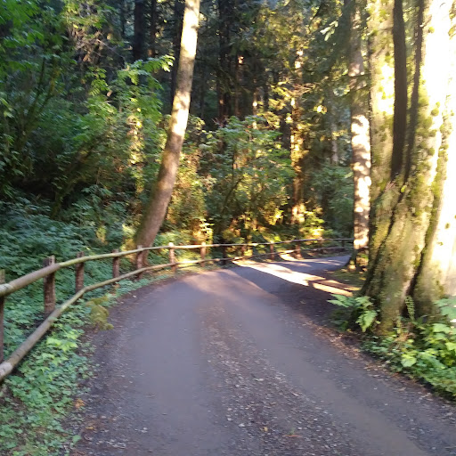 Munson Falls State park is a beautuful little park not to far outside of Tillamook. The parking lot is more of a turn around with wooden fence railing seperating the parking lot from Munson creek. There is a little picnic area with two picnic tables but only one stand alone grill for cooking. There are multiple access area to the creek, which is rather shallow and no more then 10 feet across. The trail itself is only about a quarter mile long and for most of it's lenght is relatively flat. At least til the end, where there are wooden steps next to some bedrock. The section is fairly steep but it only raises up maybe 30 feet if that. At the top you get your first glimps of the falls. As you walk a bit further, you get a better view until you reach the end of the trail as the sign says the trail is closed. Lucky for me my dog can't read english, ignored it and kept going. She later told me the trail goes about 100 yrds further, where it heads to the left a tiny bit through some undergrowth. A bit past that the trail gets a tad bit rocky and wet as it had recently rained in the area, and we were in a coastal rain forest, mostly second growth. At the end of that section she told me it was mostly downed trees and snags, with a few glimpses of the falls. Once she reported back as to what she saw we headed back the way we came. It seems that the area has a lot of hydrolic activity as some of the trees roots were exposed and their was fenced rocks to keep the trail from disappearing. The walk was short but pretty and with the water running next to it, it made it relaxing. I noticed about 7 different edible plants as well as a fern that can by used for tea, and a medicinal plant that can take away the effects of stinging nettle, mosquito bites, and other skin irritants. All and all it was a short pretty walk, and a place I can see us returning to again. There are no bathrooms, nor garbage cans. Despite this there was no litter, so please practice no trace walking. Be...