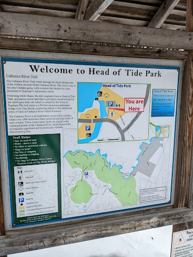 This is a wonderful, secluded little park right on the beautiful Cathance river. It is a pretty new park, with a couple of covered picnic areas and a restroom. The trail system goes along the Cathance approximately to the east. This part of the river has several waterfalls and some rapids, but I'm not sure how far along you'd have to walk to get to see them. (I've been to the Cathance River Education Alliance trails, which are a couple of miles down the trail, and there are definitely waterfalls/rapids there.) In addition, the kayaking on the tidal side of the Cathance (to the west) is remarkable. There is a gorgeous waterfall right at the park, and you can go several miles downriver. I saw lots of wildlife after only going about a mile down river. Be careful, though, because at low tide there is very little water in the river bed. I got there at exactly low tide for Bowdoinham, and I had to wait about 1.5 hours before the incoming water to be high enough for me to get down river....