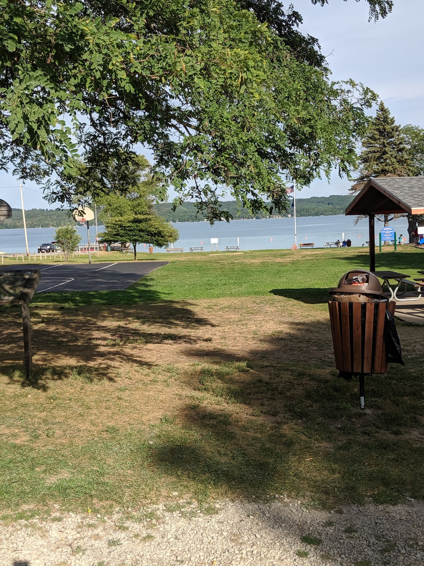 Read moreThis lake gets a lot of press.. It's clear and beautiful. I will talk about the beach area. Rocky by the shore. Clears up within a few feet. Beach is long and narrow but there is grass for your blanket or towels. Nice playground with picnic tables and grills close by. long pier for fishing, benches for sitting along the beach. Only gets a four star because of the port-a-pottys. They have started construction of a large area where they have just laid out the water pipes. I'm guessing a future bath house. This lake is worth the drive. The quaint town close by is a bonus. Would be difficult for a wheelchair except to go...