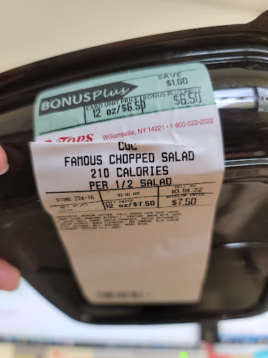 Read moreThis location employs a few very unpleasant persons. It's frustrating to have to choose which cashier line to go thru knowing you will receive an attitude from these cashiers. I look at their name tag so i may appropriately say hello and maybe brighten their day by chatting while scanning my items. That's what i was taught along with manners as a child. People these days donot interact as i expect and should. Im in that particular Tops market almost daily due to shopping for my patient that lives nearby. Yesterday the deli worker was downright nasty and acted as tho i were ruining his day. He interrupted me when i was asking him a question. Kept saying i dont understand what you want. I merely asked how much the whole liverwurst package weighed. Proprietors dont seem to care how their customers are treated. One other day i wanted to purchase. Some herbs freshly grown...altho they were droopy. So i found a produce worker and asked why the soil in the item was rock hard and dry, doesn't anyone take care of the herbs? He looked at me with a frown and just walked away. I go to the pharmacy and i stand there longer than anyone should. No one says ill be with you in a moment. (No manners!!!)...if they hate their jobs being the reason theyre all like this....then get a job they like...we all have bad days but if i were an owner or manager of a business, i would train my employees to be polite and helpful and treat everyone with kindness as im sure they would like themselves. This is an every day occurrance. Im tired of it. But im stuck shlpping there...