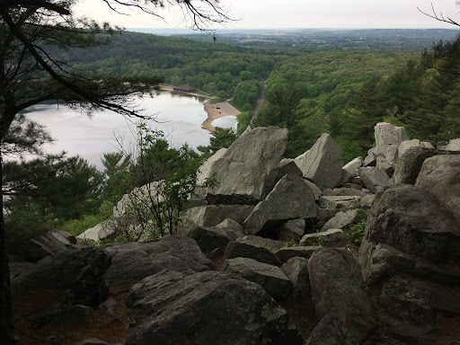 Starting from the north side will take you up the east bluff on a gentle slope. When you reach the other side of the bluff you can take a left to go to devil's doorway, and the double back if you want to take the stairs down the cliff by balanced rock: or continue on to the potholes trail to see the geological formations or to the CCC trail for the easiest way down the cliff on the south side; alternatively you can double back on the other clifftop trail as the east bluff does not have a lakeside trail to get back. So you will either need to finish going around the lake, or turn around to return to...
