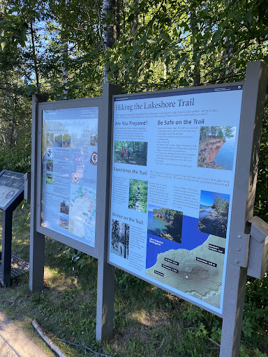 The trail is officially called the Lakeshore Trail in the Mainland Unit. It follows the shore from Meyers Beach toward Sand Point, becoming fainter beyond the cliffs above the sea caves. There are numerous lookouts above the cliffs.
