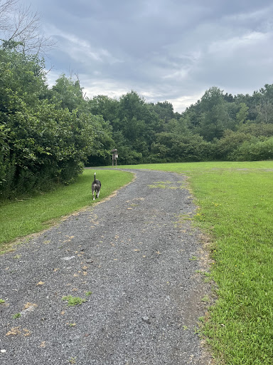 Driving to Albany Google suggested a route that was 4 minutes longer and since I was early, I took this route and found Moh-He-Con-Nuck Nature Preserve. The dirt parking area has an accessible porta potty and signage about the park including a map of the park.