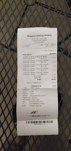 Read moreNiagara Landing had always been my favorite winery in the area, until this past weekend. I came in with my husband shortly before a large group came in. We were near another couple who had already started tasting. An older woman with short hair and glasses took care of us. The whole tasting lasted about 5 minutes, maybe less because she was rushing us so fast, because I'm assuming she wanted to take care of the large party. I have been to this winery so many times and have always enjoyed the staff and their tasting sizes are decent. Well this woman talked so fast I couldn't understand her and gave me literally a sip of each wine, while continuously looking at the large party like she couldn't wait to help them. I have never felt so unwelcomed. Usually my husband and I buy 4 or 5 bottles of wine every time we go, but not this time. Possibly never again. The other couple near us received triple what we were given and had what looked to be a pleasant conversation with the employee who was helping them. I regret not saying something at the time, but I had such a bitter taste in my mouth I just wanted to get the hell out of there. Maybe you should treat your loyal customers a little better instead of catering to large parties who are only there...