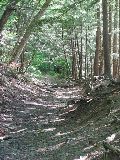 That being said a lot of them are wonderful, there's a path near the entrance on the right, that eventually leads into a deer trail. (We go up in the spring to collect leeks). The path down to the gorge is steep (probably 25-40°) but worth it to swim in the spring water feed crick. And the small path at the end of the dirt road leads to lookout point: a natural path suspended off the edge of the cliff looking down into the gorge. This is absolutely breath taking in the fall when the leaves are changing. (If your dubious of heights, or wrangling toddlers The circular path around the main pavilion has a couple safer lookout boxes over a similar view.)