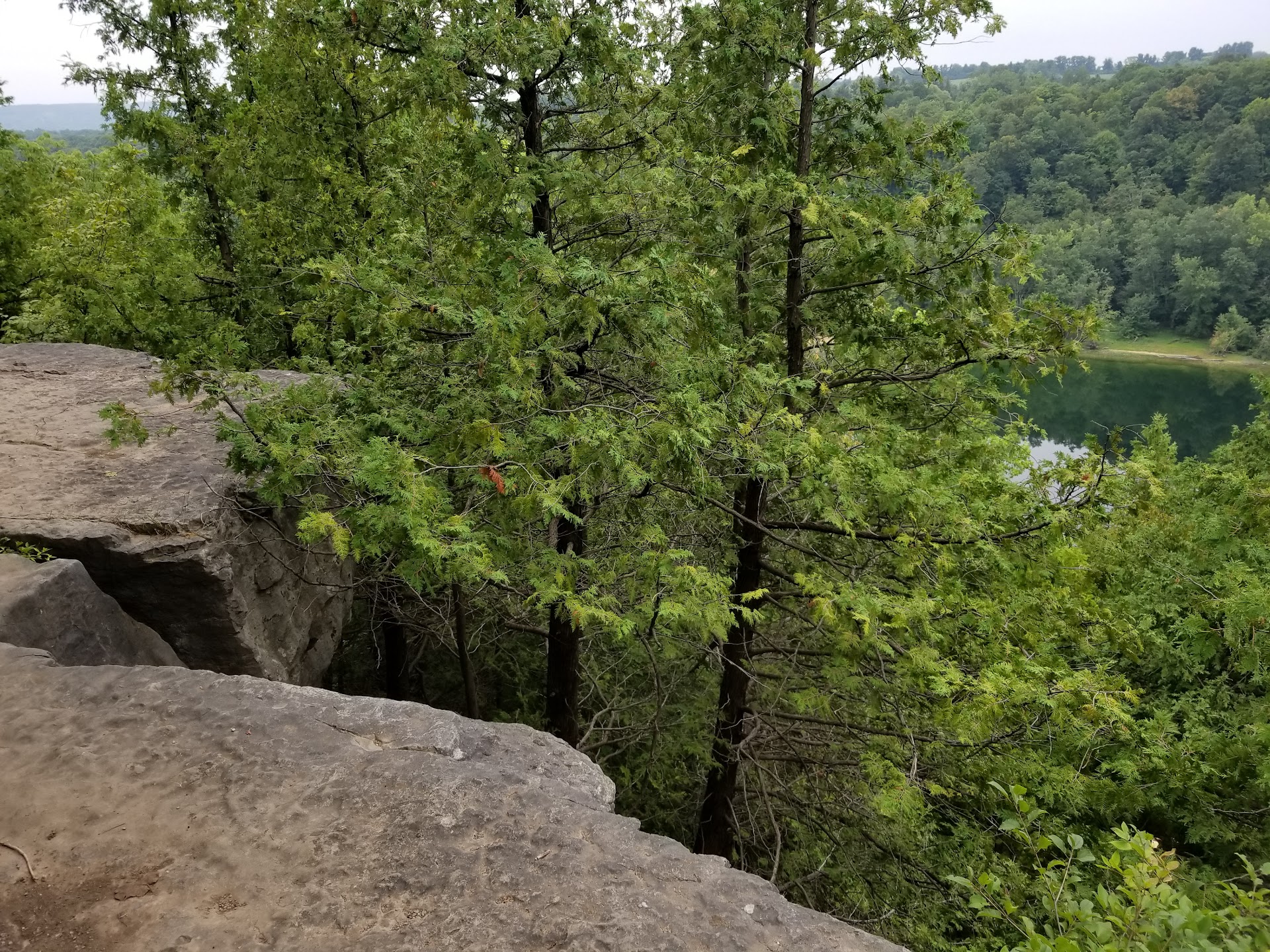 I visited this park along with my kids. There is a small playground with informational posts about plants and animals that children may find interesting. We chose to hike the blue (cliff) trail, part of the yellow and the red trail. It was doable for my six and ten year old, but there are plenty of hazards to be aware of. Primarily the fall hazard of the blue trail and the generally rough, uneven, rocky terrain of all three trails we hiked. DO NOT take your young kids on the blue trail, if they cannot follow your directions, because of the constant fall hazard. Make sure you're fit enough to hike a trail like this. Other than that, I recommend starting your hike earlier in the day so you don't run out of light. Bring plenty of water especially on warm days (today was 86 f and mid 70's percent humidity)and maybe an energy bar. Bring one of the park maps with you to help you find your way around, though the trails are pretty well marked. A spritz of Off could be helpful as well. Also I don't remember if there's cell service but it may not hurt to have your phone with you in case of a mishap. Be...