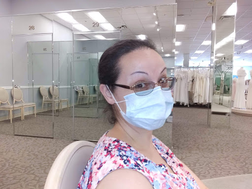 Be prepared to sweat. The store is climate controlled, but the gowns are heavy and the material doesn't breathe. You're trying on five gowns rapidly and you're going to sweat.